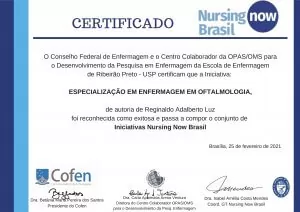Nursing Now, campanha mundial de três anos (2018-2020), coordenada no Brasil pelo COFEN (Conselho Federal de Enfermagem) e pelo Centro Colaborador OPAS/OMS/EEUSP-Ribeirão Preto, selecionou o curso de pós-graduação em Enfermagem em Oftalmologia como uma iniciativa exitosa.