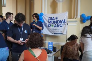Alunos e professores da Liga de Neurologia orientam a população sobre prevenção, diagnóstico e cuidados imediatos frente ao Acidente Vascular Cerebral