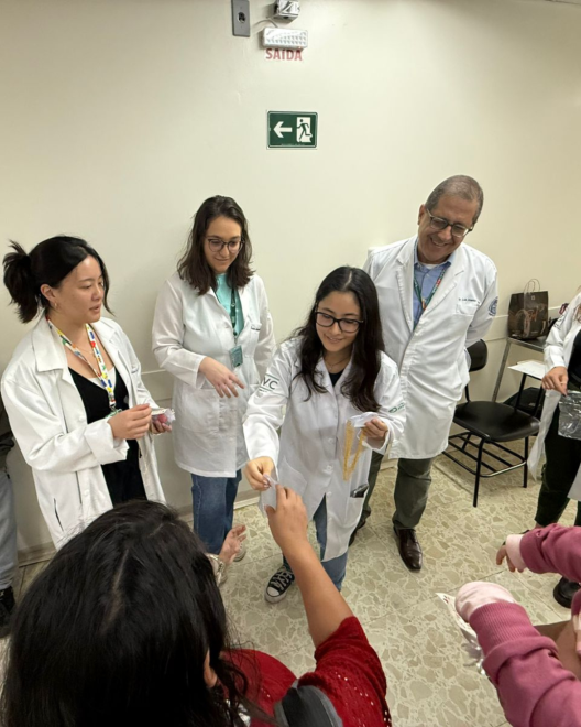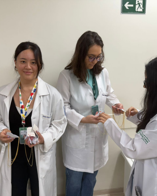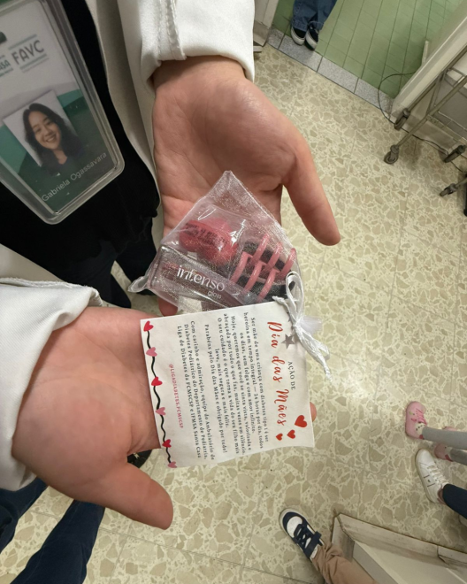 Após o atendimento dos pacientes, os alunos da liga e os residentes da Endocrinologia Pediátrica puderam entregar um kit de autocuidado para estas mães a fim de homenageá-las no mês das mulheres.
