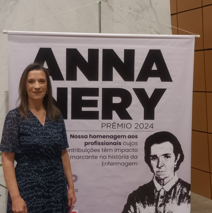 A professora Camila Waters recebeu o prêmio Anna Nery pelo reconhecimento ao trabalho de excelência realizado na formação de novos profissionais de enfermagem, já que se destaca por sua dedicação e compromisso ao desenvolvimento profissional contínuo, contribuindo para a formação de futuras gerações de enfermeiros e promovendo a disseminação do conhecimento dentro da comunidade acadêmica.