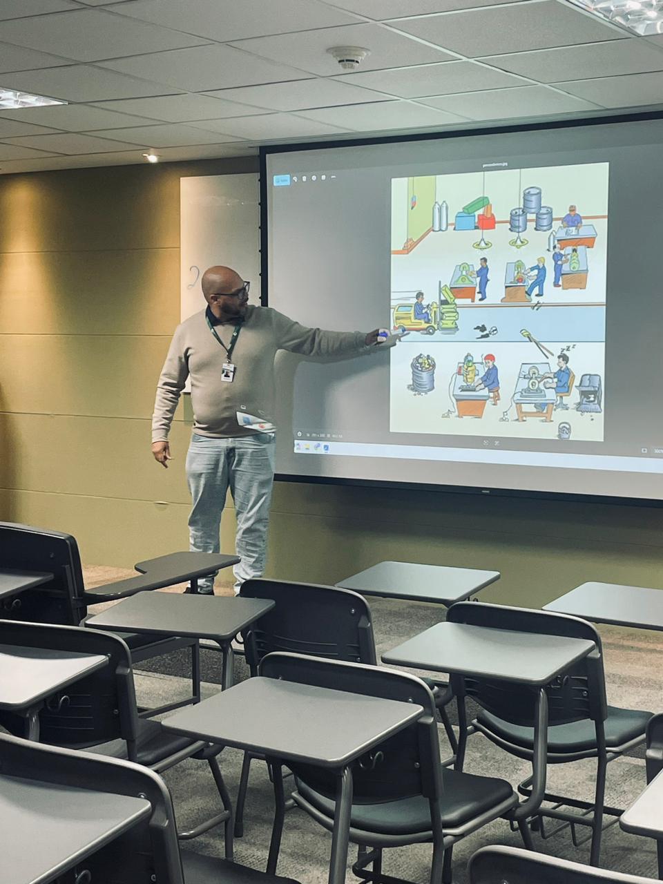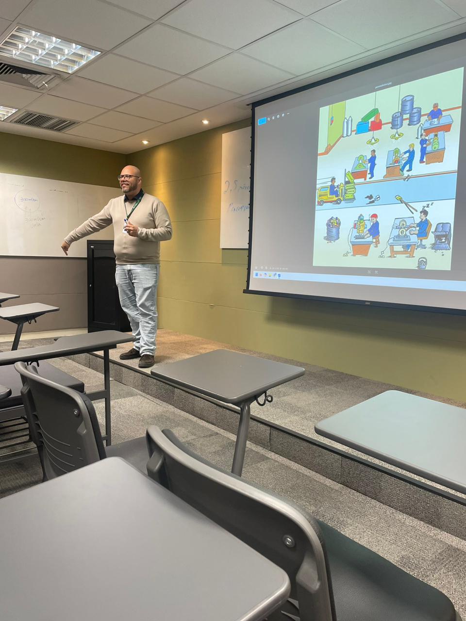 De forma interativa e dinâmica, ele apresentou sobre o tema “Análise e percepção de riscos”, usando imagens para engajar a equipe da manutenção, que participou ativamente com seus conhecimentos e experiências.