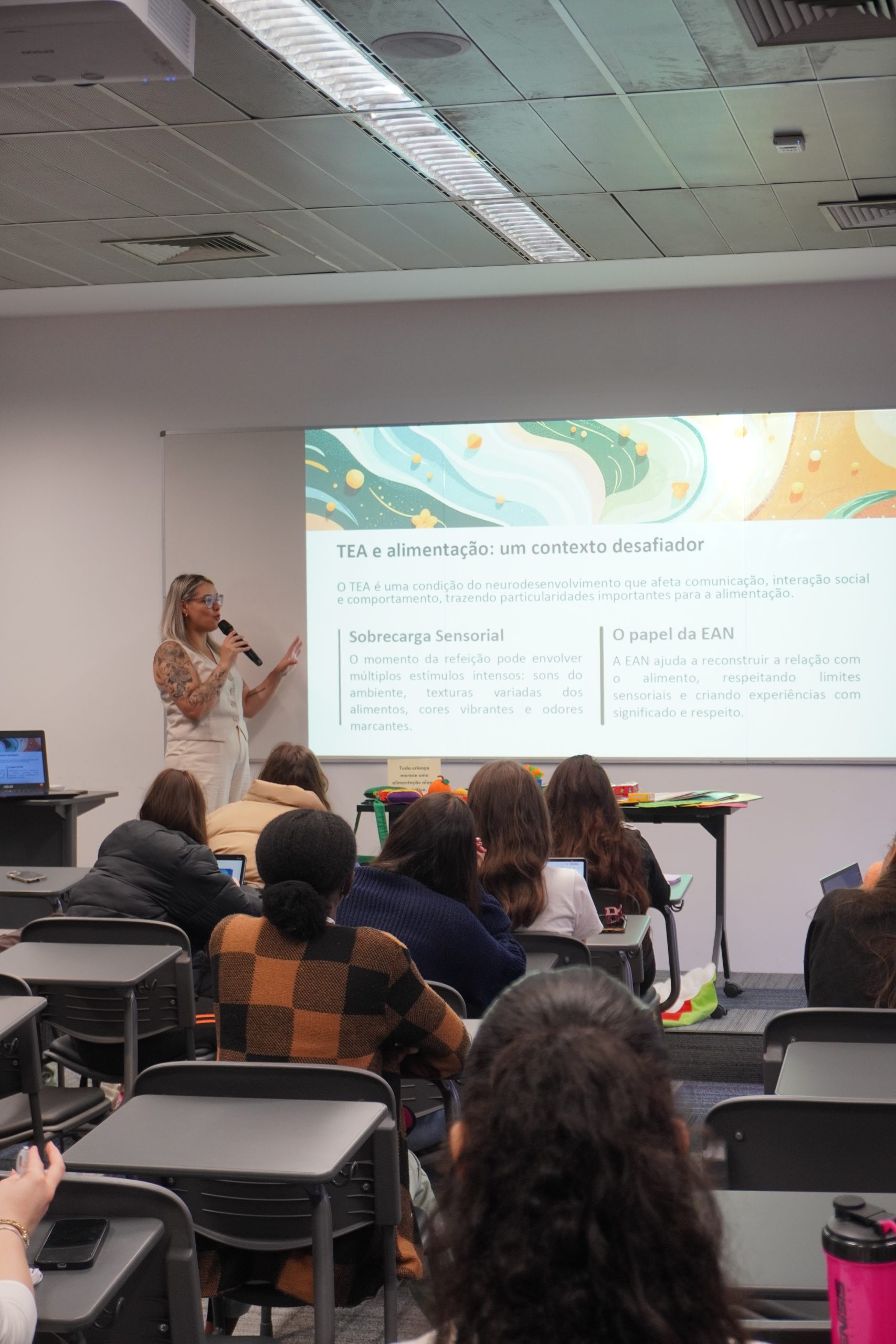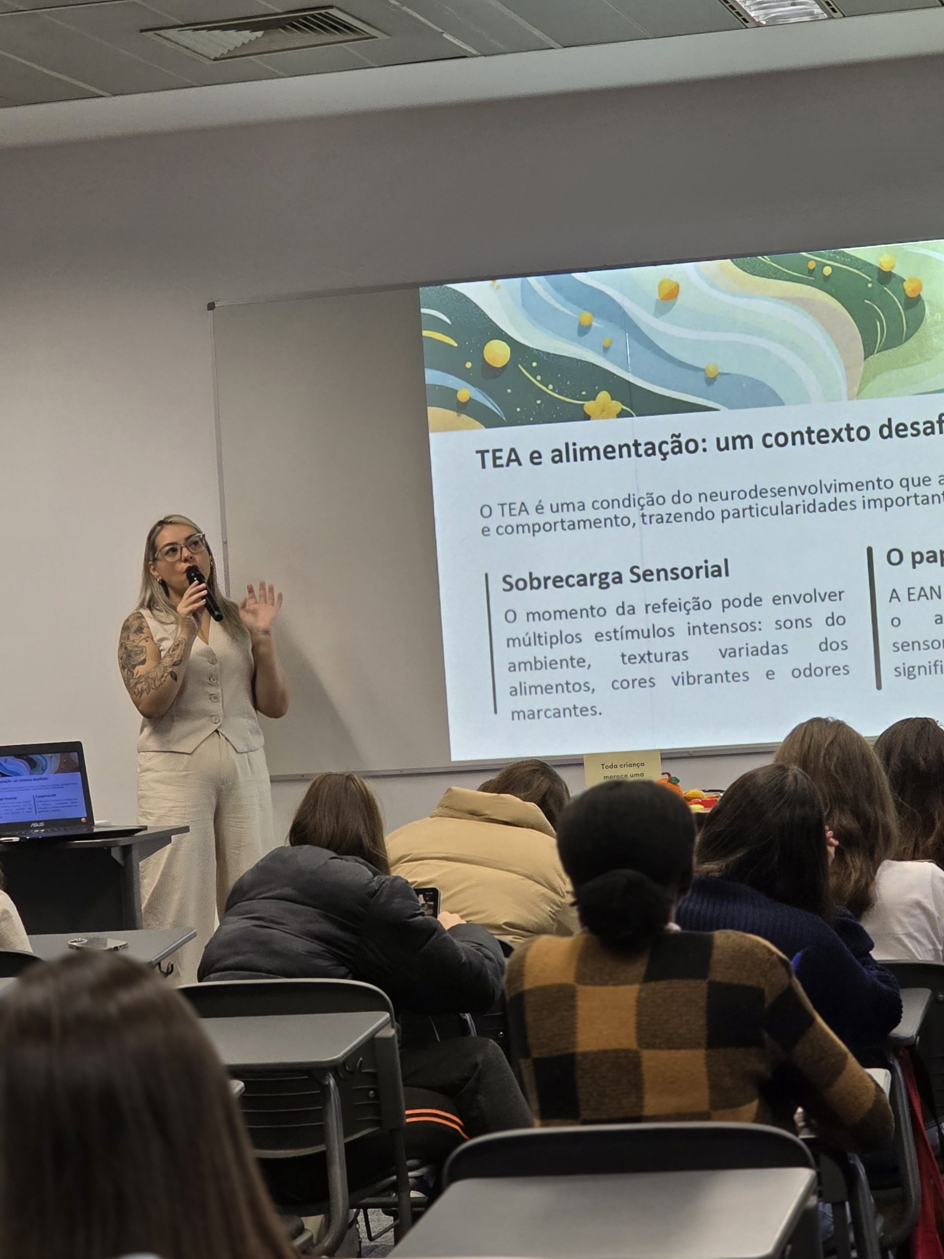 A realização de um workshop sobre o tema foi fundamental para a formação dos futuros nutricionistas. “É extremamente importante para os estudantes já conhecerem os públicos divergentes, que requerem tratamento totalmente diferenciado e para os quais ainda temos poucos profissionais que atuam com essas particularidades, tanto no autismo quanto na seletividade alimentar.”