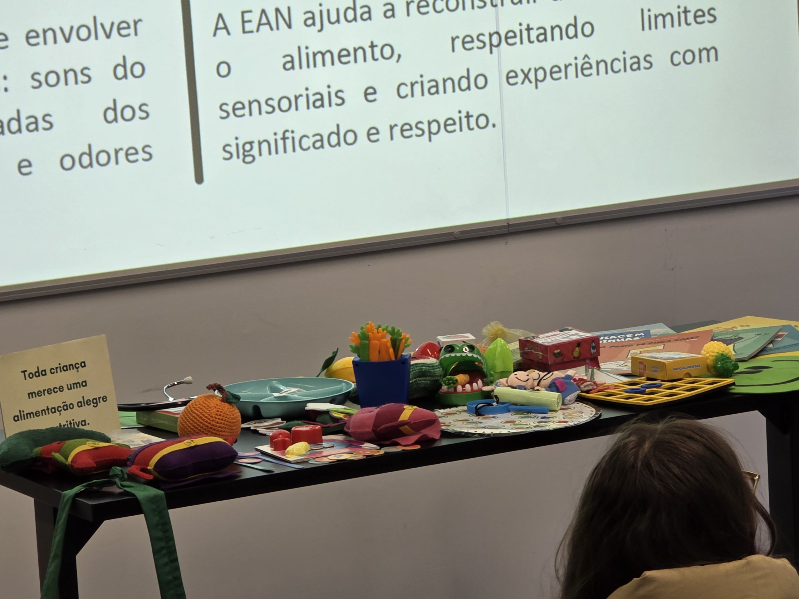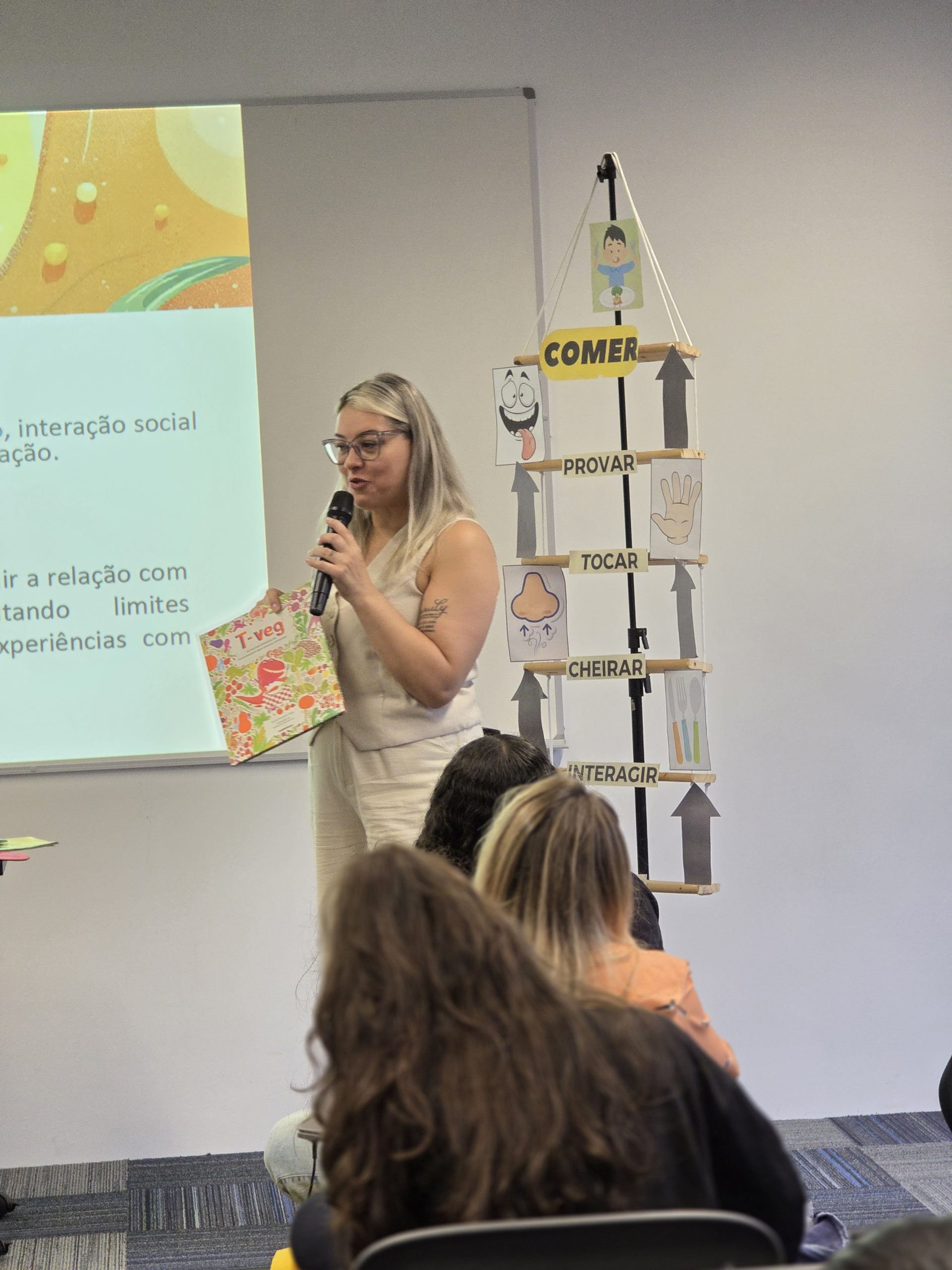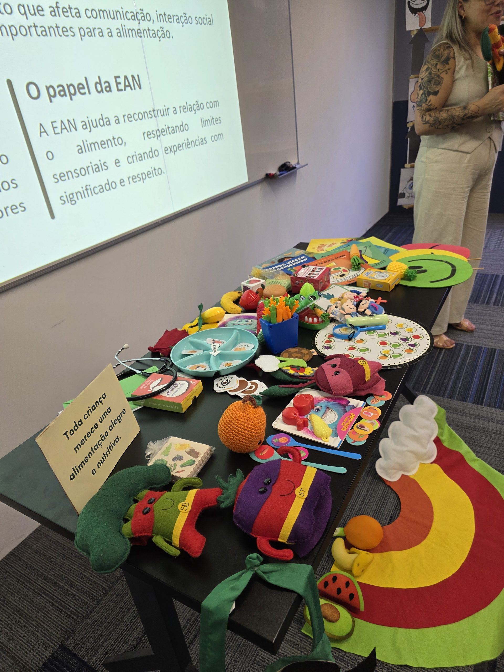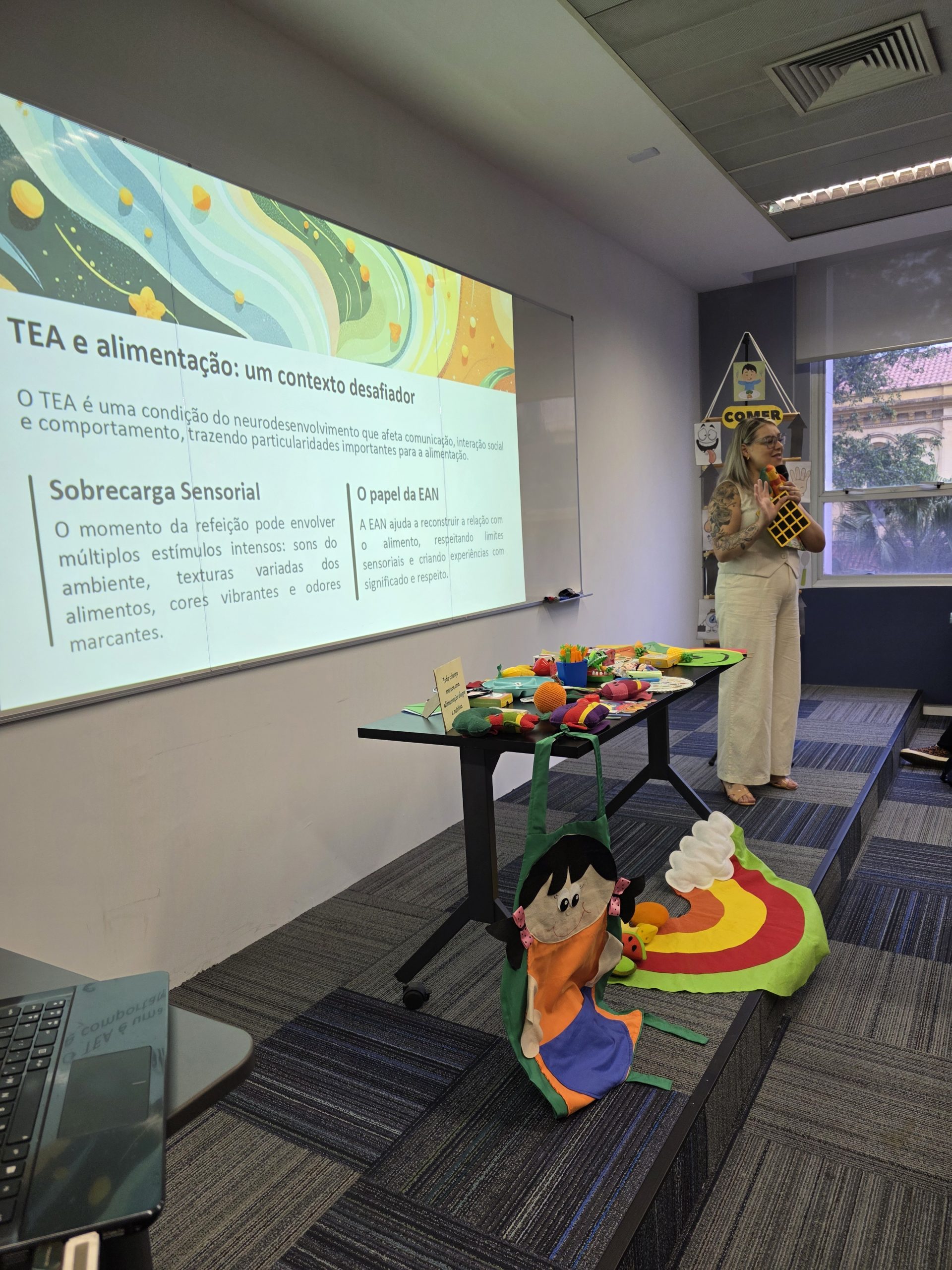 O evento apresentou os níveis do TEA e a importância do lúdico para trazer o alimento para a realidade da criança