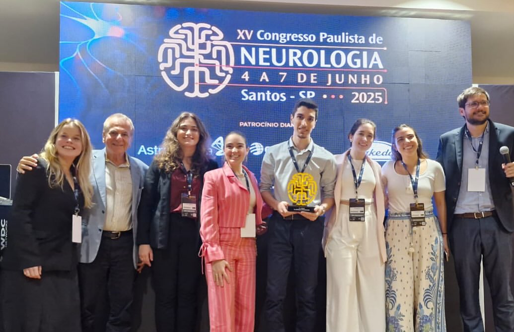 Alunos e professores do curso de Medicina da Faculdade de Ciências Médicas da Santa Casa de São Paulo (FCMSCSP) participaram do XV Congresso Paulista de Neurologia, que ocorreu entre os dias 4 e 7 de junho de 2025, em Santos (SP).